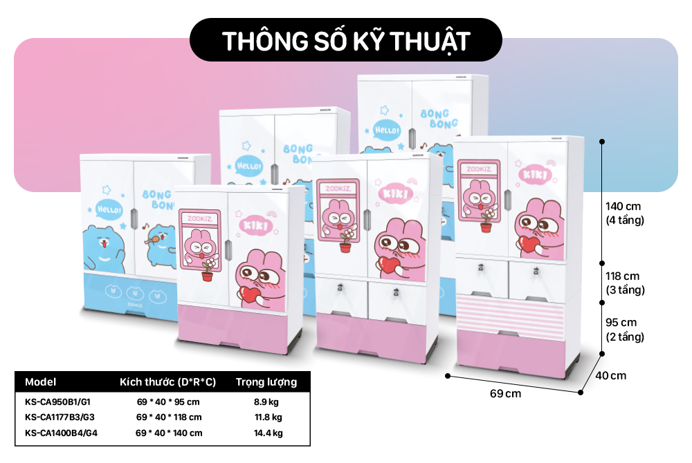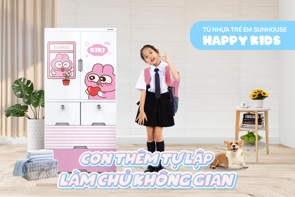 Tên sản phẩm: Tủ nhựa trẻ em 2 cánh 4 ngăn Happy Kids Sunhouse KS - CA1400G4