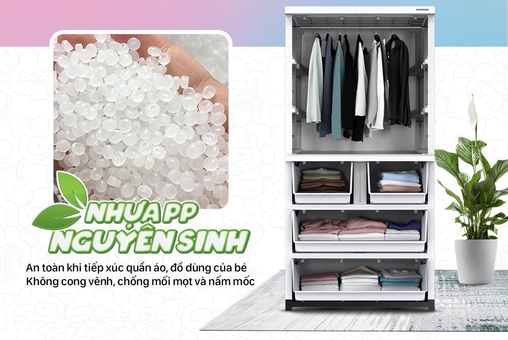 Chất liệu cánh tủ: Nhựa PP nguyên sinh