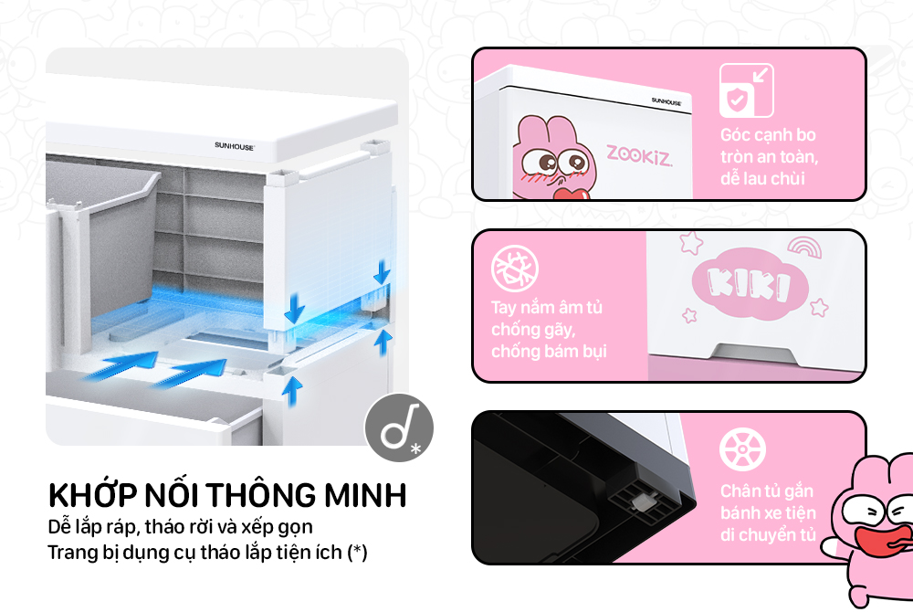 - Khớp nối thông minh, dễ dàng tháo lắp tủ