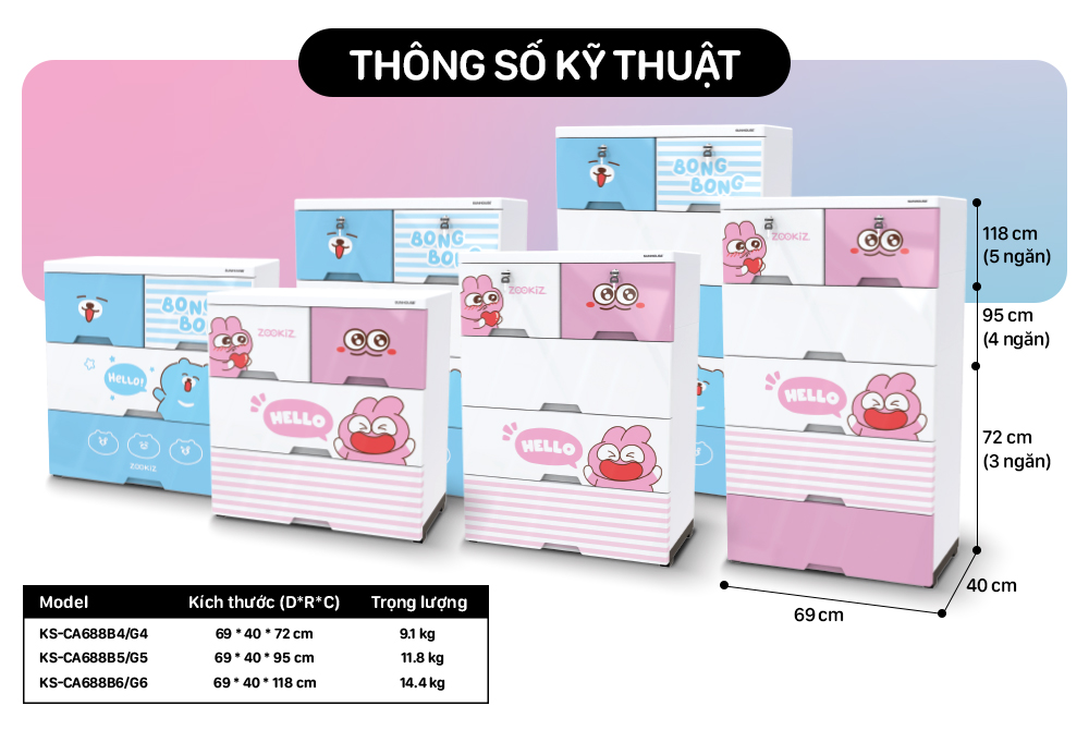 Tên sản phẩm: Tủ nhựa sơ sinh 4 ngăn Happy Baby Sunhouse KS-CA688G4