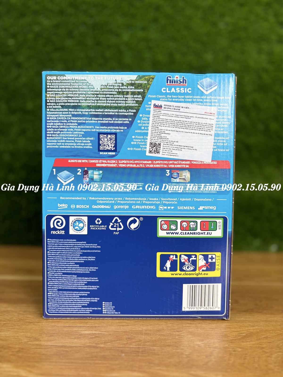 - Viên rửa chén Finish Classic Dishwasher Tablets đáp ứng tiêu chuẩn Châu Âu, đảm bảo an toàn sức khỏe, thân thiện với môi trường