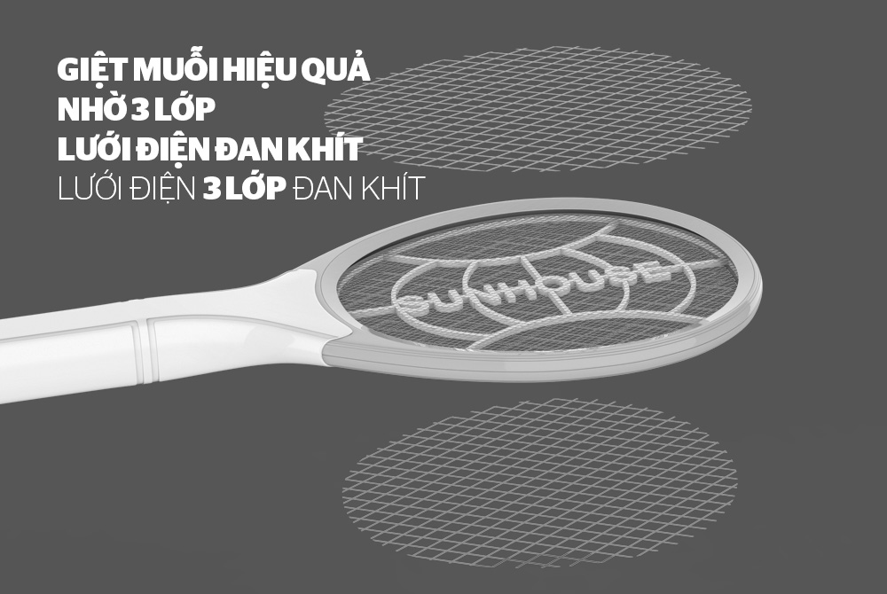 Thiết kế với 3 lớp lưới điện đan khít giúp tiêu diệt muỗi dễ dàng, nhanh chóng đồng thời bảo vệ người dùng (nhất là những gia đình có trẻ nhỏ).